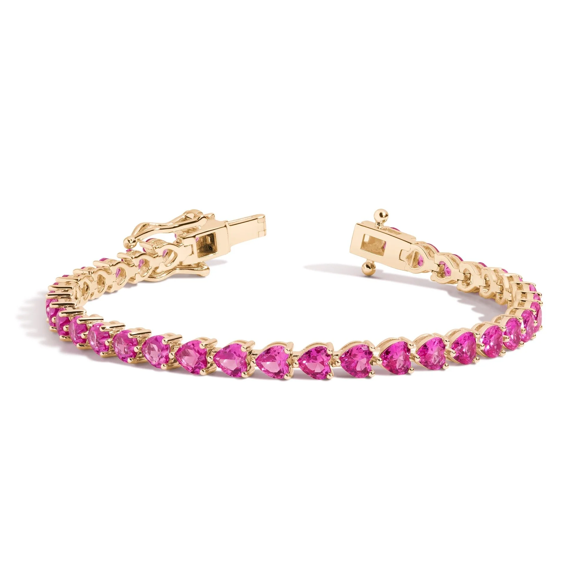 Lab Grown Pink Sapphire Heart Tennis Bracelet
